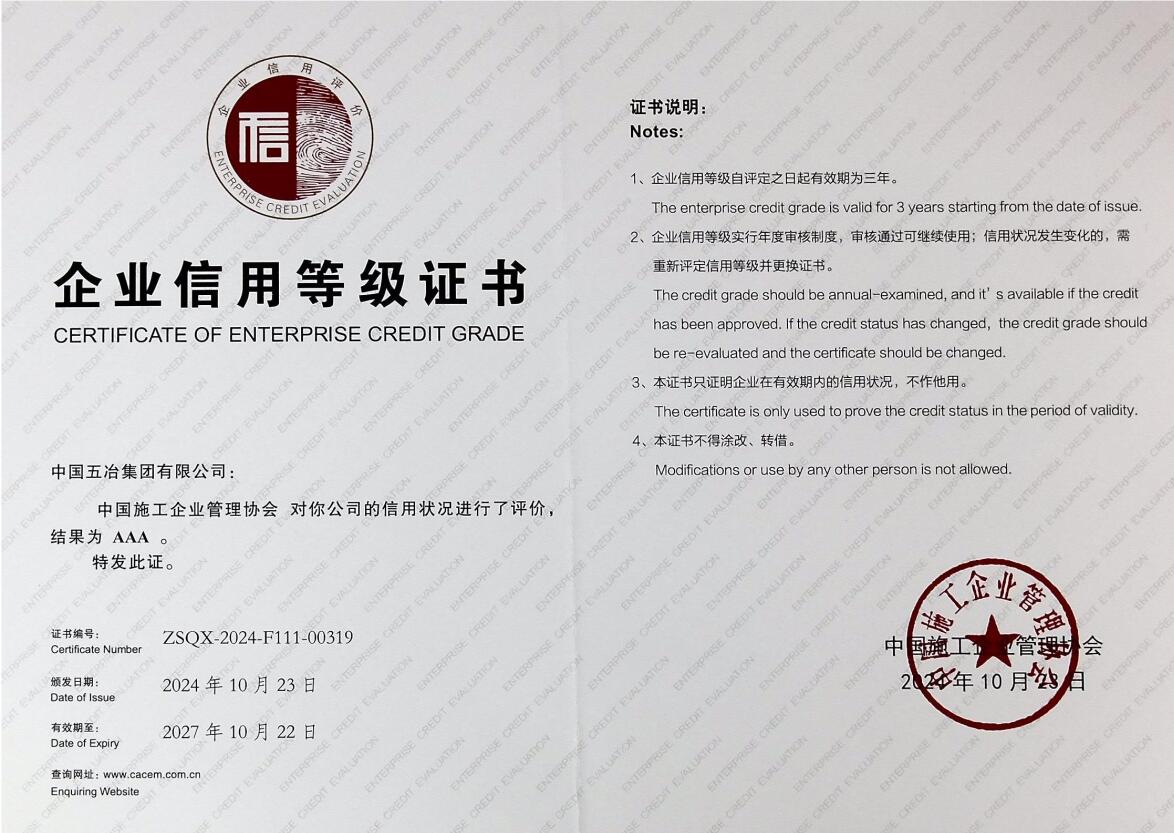 全國施工企業AAA信用等級