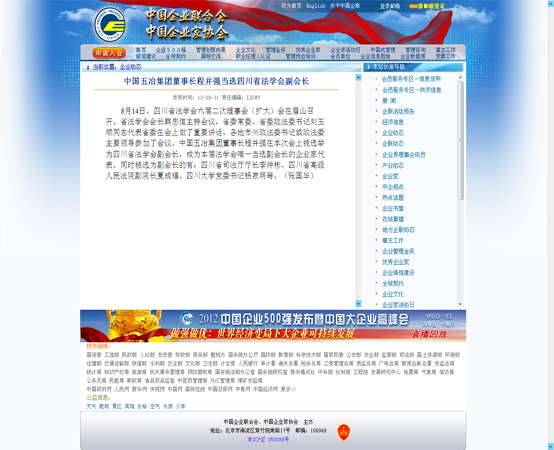 中國企業(yè)聯(lián)合網(wǎng)報道:中國五冶集團董事長程并強當(dāng)選四川省法學(xué)會副會長
