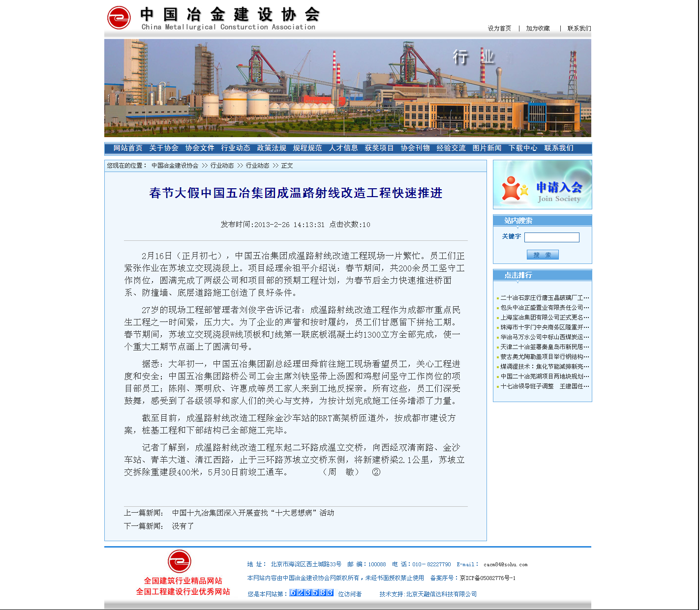 中國冶金建設協會報道:春節大假中國五冶集團成溫路射線改造工程快速推進