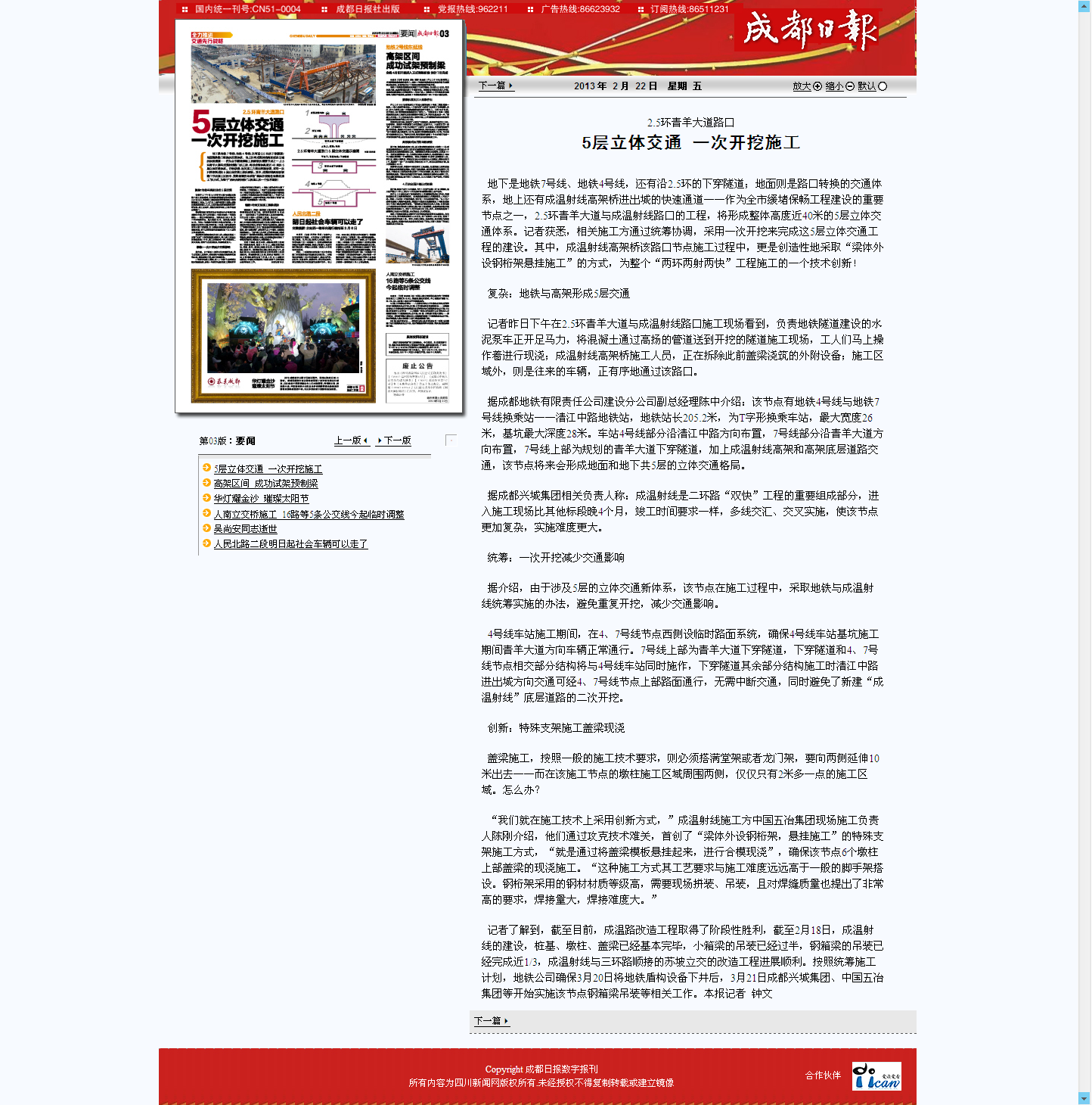 成都日報報道:2.5環青羊大道路口 5層立體交通 一次開挖施工