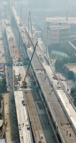在整個高架橋橋面全線貫通之后,下一步,中國五冶則將全力以赴地進行橋面系以及底層道路等的建設施工。
