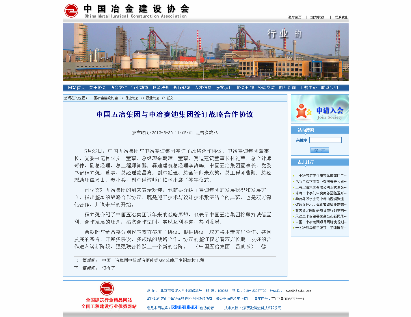 中國冶金建設網報道:中國五冶集團與中冶賽迪集團簽訂戰略合作協議