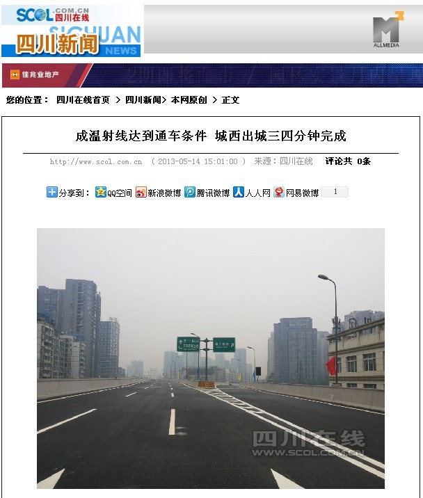 上一篇:天府早報報道:成溫路射線有望提前至月底通車