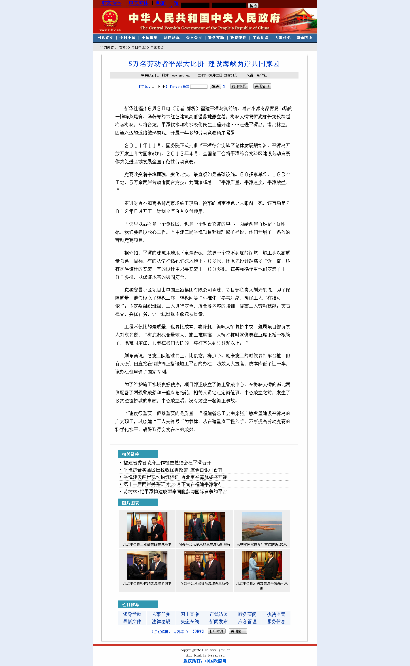2011年11月,國務院正式批準《平潭綜合實驗區總體發展規劃》,平潭島開放開發上升為國家戰略。2012年4月,全國總工會將平潭綜合實驗區建設勞動競賽作為促進區域發展全國示范性勞動競賽。
