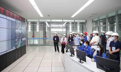 在工作人員帶領(lǐng)下,采訪團首先前往裝配式混凝土建筑研發(fā)生產(chǎn)基地。大家實地了解了混凝土預(yù)制部件在電動布料、三維振搗、智能養(yǎng)護等自動化設(shè)備“栽培”下“成長塑型”的全過程,參觀了作為車間生產(chǎn)“中樞系統(tǒng)”的智造信息中心,在踴躍拍照和熱烈提問的同時,發(fā)出了由衷贊嘆:“與傳統(tǒng)方式相比,省料省力還省心,這才是新發(fā)展理念?!薄爸灰獟邟哌@些墻板部件的二維碼,就能知道流向哪個項目,太智能了!”