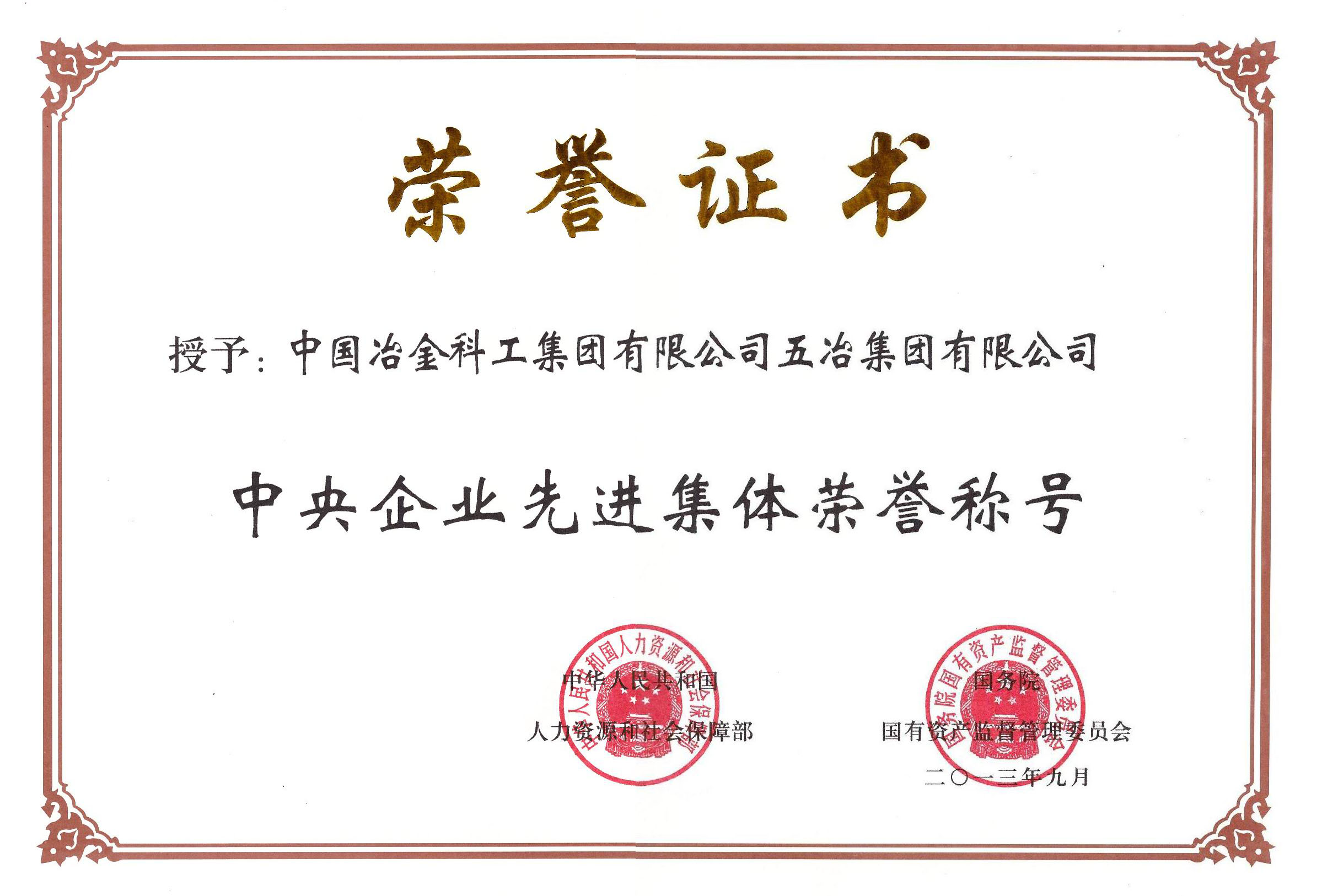 ????2013年10月15日,國務院國資委授予中國五冶集團有限公司“中央企業先進集體”稱號。