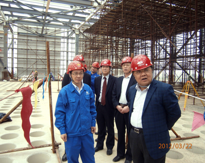 22日一早,程并強一行來到廈門天馬微電子施工現場,對該項工程進行了實地考察,針對工程施工進度、技術特點、工程質量、安全文明施工、總承包管理等情況進行了全面細致的了解,并與現場施工管理人員以及工人進行了親切交談并予以問候,感謝大家付出的辛勤勞動和為該項工程做出的貢獻,對目前項目取得的進展及成就表示首肯。視察完施工現場后,在該項目經理部辦公室召開了管理人員座談會。會上,程并強認真聽取了項目經理熊中蘭同志對工程情況的介紹以及項目部的工作匯報。?