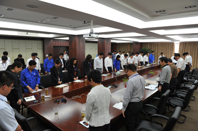 5月21日15時48分,上海有限公司召開電話會議,上海片區所有二級公司負責人及部分員工和韶鋼特棒項目部的全體員工同時為在此次事故中遇難的員工舉行了哀悼活動。?