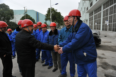 在寶鋼硅鋼項目部,程并強(qiáng)與五冶集團(tuán)勞動模范朱庭貴等親切握手、視察了施工現(xiàn)場,了解了工程進(jìn)展、員工隊伍培養(yǎng)、后續(xù)項目拓展等情況。最后,他向項目部全體員工致以了新春的問候!并向春節(jié)堅守崗位的員工們送去了慰問品。