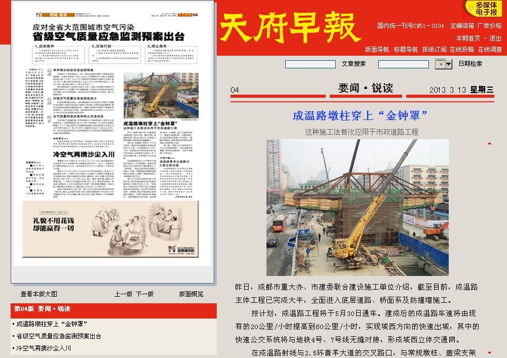 據(jù)了解,該施工法之前更多用于大江大河的搭設(shè)施工,而在成都市政道路工程采用尚屬首次,目前正申請(qǐng)施工專利技術(shù)。