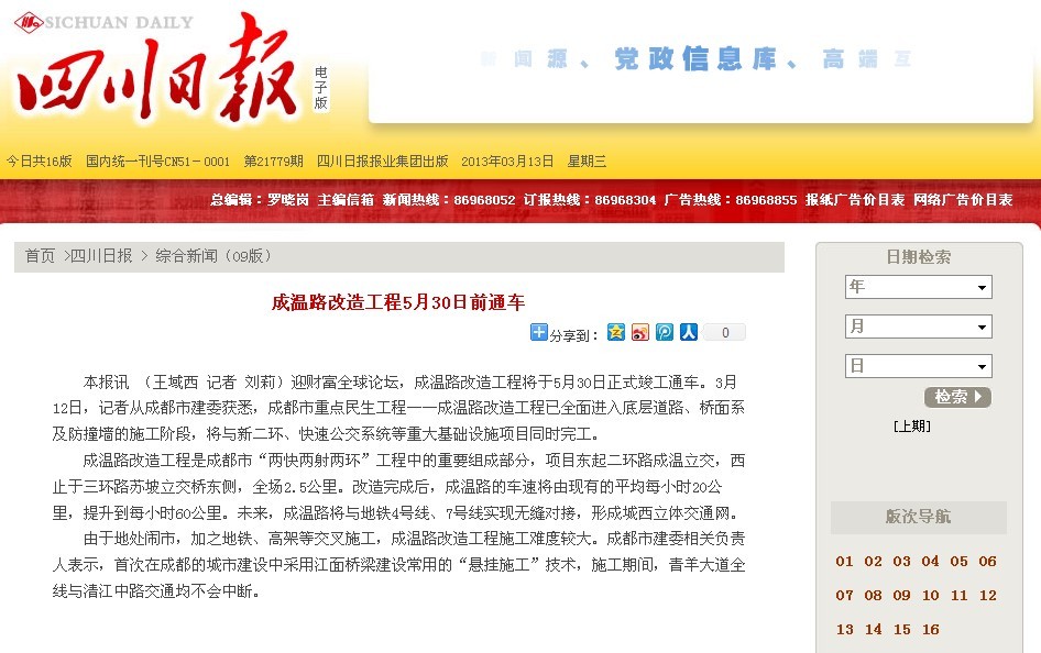 成溫路改造工程是成都市“兩快兩射兩環”工程中的重要組成部分,項目東起二環路成溫立交,西止于三環路蘇坡立交橋東側,全場2.5公里。改造完成后,成溫路的車速將由現有的平均每小時20公里,提升到每小時60公里。未來,成溫路將與地鐵4號線、7號線實現無縫對接,形成城西立體交通網。