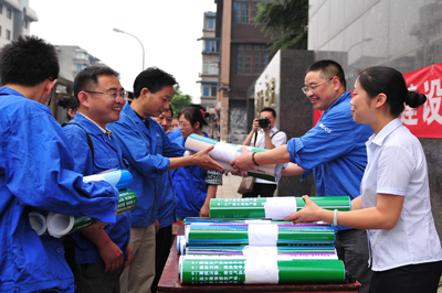宣傳活動現場對各單位贈送了節能減排宣傳掛圖,并要求各單位要面向一線進行廣泛宣傳,隨后還開展了節能減排承諾簽名活動,公司職工及過路市民積極響應,排隊簽名承諾,隨后工作人員派發了中國五冶集團有限公司特制的倡導低碳綠色生活的環保宣傳袋,受到廣大職工和市民的歡迎。(鄧超)