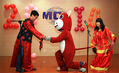 活動上,曲藝、小品、獨唱、歌舞表演等節(jié)目精彩紛呈,為現(xiàn)場觀眾們送上了節(jié)日的祝福。由2位小觀眾和其他6位大觀眾表演的互動游戲“蘿卜蹲”,孩子的天真童趣、獨具一格的表演形式,瞬間就把現(xiàn)在的氣氛引向了高潮。在傳統(tǒng)曲藝節(jié)目《三句半》中,幽默的語言、滑稽的表演,引起了現(xiàn)場陣陣掌聲。歌曲獨唱《最初的夢想》、《至少還有你》,小品《碰瓷》,歌伴舞《歡天喜地過大年》等節(jié)目,精彩的演藝、風趣的表演,讓現(xiàn)場的觀眾開懷大笑,高潮不斷。雖然時間倉促、節(jié)目準備不是很充分,但是快樂并沒有因此打折扣,現(xiàn)場觀眾都沉浸在了快樂、熱鬧的氛圍之中。