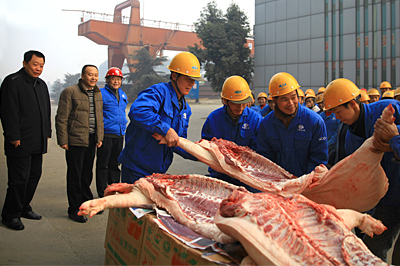 現場,蒙昌嘉一行對過去一年里廣大員工的辛勤努力表示感謝,希望大家來年繼續努力,再戰高峰,并給大家送上了豬肉、水果、春聯等慰問品,祝福全體員工們新春吉祥如意。同時,蒙昌嘉還就節日期間的安全生產問題進行強調,叮囑他們一定要把安全工作落實到每一個細節,度過一個歡樂、祥和、愉快的新春佳節?! 。ㄠ嚦?br/>