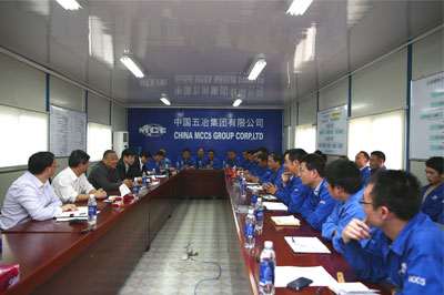在施工現場,程并強詳細了解了該項目目前的實施情況,并與項目團隊就質量、成本控制、下一步的工作計劃、保障措施及面臨的困難與問題等方面進行了深入地交流。程并強對項目團隊所做出的努力表示滿意,他指出,項目部身處異國他鄉,條件艱苦,在集團公司的統一指揮協調下克服了”5.14”風波以及當地基礎設施薄弱、資源匱乏和氣候條件惡劣等困難,他希望項目部能夠再接再厲,加強全過程精細化管理,超前預判問題,細致解決問題,順利推進項目實施,展現冶金建設服務“國家隊”的風采。
