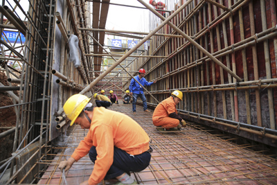 4月4日早上8時許,第一批小組來到中國五冶集團(tuán)新華之星項(xiàng)目部,現(xiàn)場已經(jīng)是一派忙碌的景象。近400余人在A、B兩個施工區(qū)域干得熱火朝天,據(jù)項(xiàng)目部管理人員介紹,為了保證4月底負(fù)二層底板澆筑和混凝土大體積澆筑,項(xiàng)目部從3月25日起就開始實(shí)施通宵倒班施工。路橋公司博覽城區(qū)域路網(wǎng)項(xiàng)目亦是如此,如今該工程已經(jīng)完成過半體量,清明假期,項(xiàng)目部組織530余人奮戰(zhàn)在一線,隨處可見來回過往的工程車輛和施工人員,緊張而有序。
