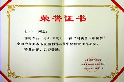 全國冶金美展最佳作品證書