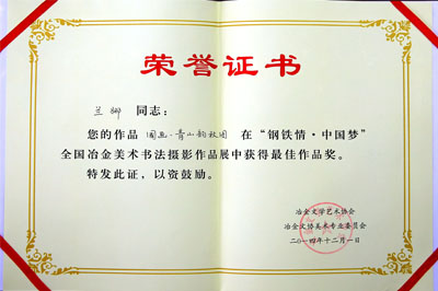 ?全國冶金美展最佳作品證書