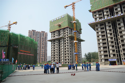 項目經(jīng)理在勝天新苑項目現(xiàn)場參觀