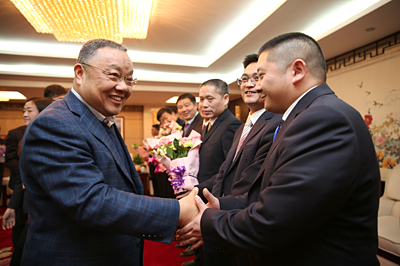 ? ? ? ?下午六時許,集團公司董事長、黨委書記程并強在29樓會議室親切接見了勞模,與勞模們一一握手致意并合影留念。隨后,大家在一片融洽、輕松的氛圍中進行了交流談話,程并強認真詢問了每位勞模的工作近況,詳細了解了他們的工作經歷和感受。談話中,程并強介紹了集團公司近年來的發展概況和2015年集團公司主要經濟指標完成情況,指出集團公司取得的眾多成績,與廣大模范和先進人物的辛勞付出、忘我工作、無私奉獻離不開,與全體員工的辛勤工作分不開,并代表集團公司對大家表示衷心感謝!寄語大家要在現有的工作崗位上,充分發揮作用,用行動感染和激發每一位勞動者的工作干勁,帶領培養出一批愛崗敬業的團隊,為集團公司轉型、提升、擴張發展做出更多更大的貢獻,并祝福大家在未來的工作中取得更多更好的成績;同時,要求相關部門進一步宣傳先進模范,弘揚正能量,帶動廣大員工;要進一步關心關愛勞模,關注先進典型,形成相關幫扶的長效機制,鼓勵大家成長、提升。