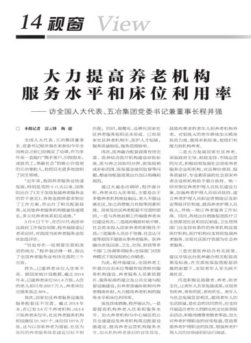 3月10日,《中國改革報》以“大力提高養老機構的服務水平和床位利用率”為題,刊文報道了全國人大代表程并強在兩會上提交的《關于推進養老服務體系建設的幾點建議》,記者就相關話題進行了詳細的采訪報道。