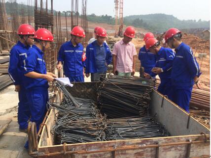 在檢查鋼筋的工作人員
