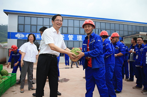 同時,集團公司領導一行對公司宜賓片區在建項目員工致以親切慰問,為大家送上了西瓜、飲料、藿香正氣水等防暑用品,并叮囑大家在高溫施工期間,要保重身體、確保安全,讓公司放心,讓家人放心。(鄧超)