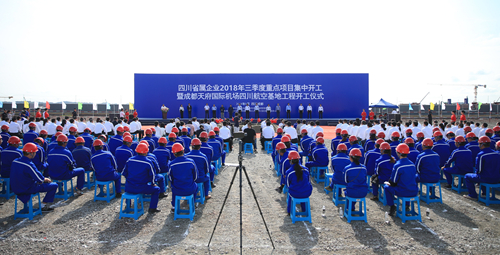 9月17日上午,四川省屬國有企業2018年三季度重點項目集中開工儀式在中國五冶集團承建的成都新機場四川航空基地工程航空食品與貨運施工總承包工程項目現場舉行。四川省國資委副主任薛東兵,四川航空集團有限責任公司黨委書記、董事長李海鷹,中國五冶集團董事長、黨委書記程并強等有關領導出席開工儀式并致辭。集團公司副總經理張剛、營銷總監曾松俊,一分公司、工程管理部、市場營銷部有關負責人參加開工儀式。