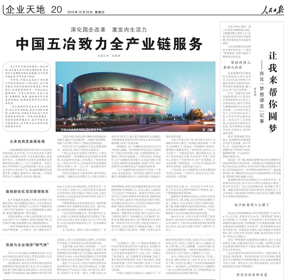 10月26日,《人民日報》以《深化國企改革?激發內生活力——中國五冶致力全產業鏈服務》為題,對中國五冶集團深化國有企業改革的經驗和成績進行了深度報道。