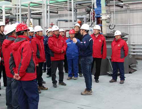 李連華一行視察了項目鹵水預處理車間、變配電及計控中心、沉鋰車間等施工現場,詳細了解了工程的施工進展情況,安全生產措施的落實情況及試車工作等相關事宜,對工程的進度、質量和現場安全文明施工給予了肯定,同時希望大家要認真落實好中國五礦“大干一百天、確保兩翻番”的決策部署,確保項目履約。