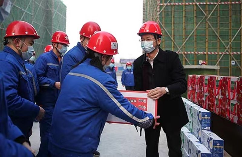 1月1日新年伊始,集團公司黨委書記、董事長朱永繁一行前往項目現場開展帶班檢查并慰問一線員工,集團公司黨委副書記、工會主席周悅靜,副總經理譚興山、張剛,董事會秘書趙云,工程部、安環部、技術部、質量部、黨群部、辦公室及部分二級單位負責人等參加活動。