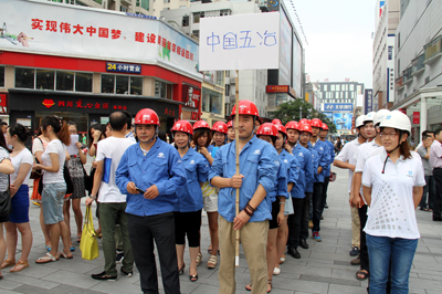 7月2日,在中國五冶集團(tuán)承建并正式通行后的成都市紅星路廣場上,萬人攢動,鑼鼓喧天、熱鬧非凡,這里正在舉行一場由成都市錦江區(qū)主辦的“實(shí)現(xiàn)偉大中國夢,建設(shè)美麗繁榮和諧四川”大型簽名活動。曾榮幸參與了紅星路街區(qū)綜合整治項(xiàng)目工程蜀都大道至東大街路段建設(shè)的中國五冶集團(tuán)一公司項(xiàng)目團(tuán)隊(duì)和機(jī)關(guān)各部門代表40余人組隊(duì)參加了活動。