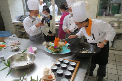 為迎戰大賽,五冶大廈廚師團隊作了精心準備,以求色、香、味、形、質俱佳,既要具有良好口感,又要使作品富有藝術性,最終推出了“魚米之鄉”“養身豆腐”和“迎客松”三道菜肴參賽。